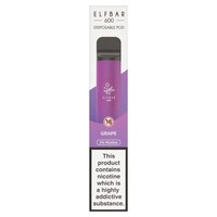 ELFBAR Disposable Pod Grape 20mg/ml Parameters: Size: ?16x104mm E-liquid Capacity: 2ml Nicotine Strength: 20mg/ml (2% nicotine) Nicotine Dose Per Puff: 100µg Battery Capacity: 550mAh Puffs: Up to 600 Ingredients: Vegetable Glycerine Propylene Glycol Natural & Artificial Flavours Nicotine Benzoate Produce of: Made in China Net Contents: 600 x Disposable Pod Minimum Age Requirement: 18 years
